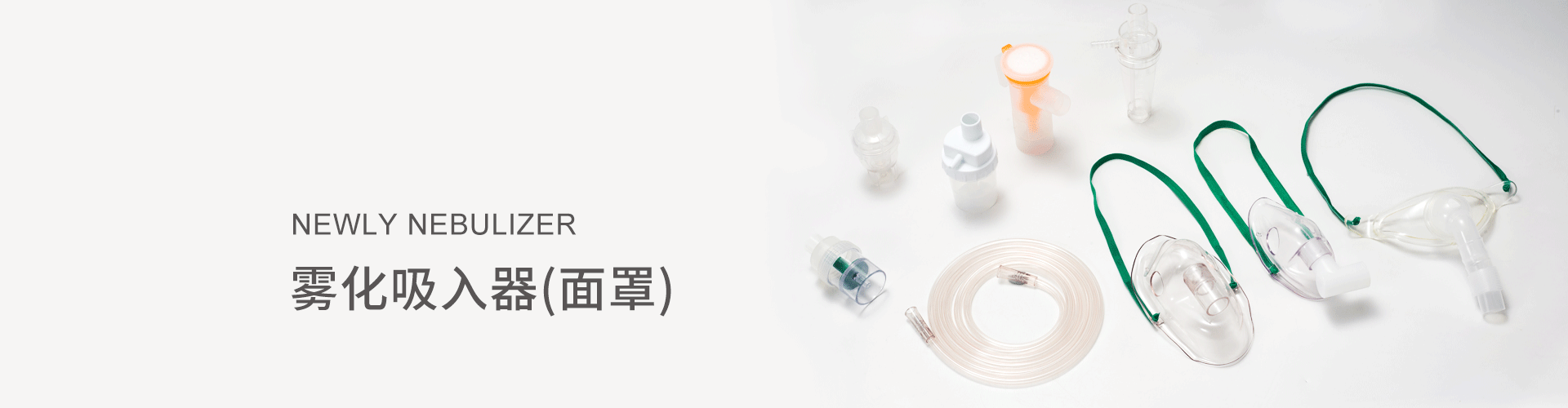 2. The product comprises oxygen tubing, a nebulizing cup, a nebulizing mask, a tracheotomy mask, corrugated tubes, rotatable connectors and an air filter, and is individually packaged.
