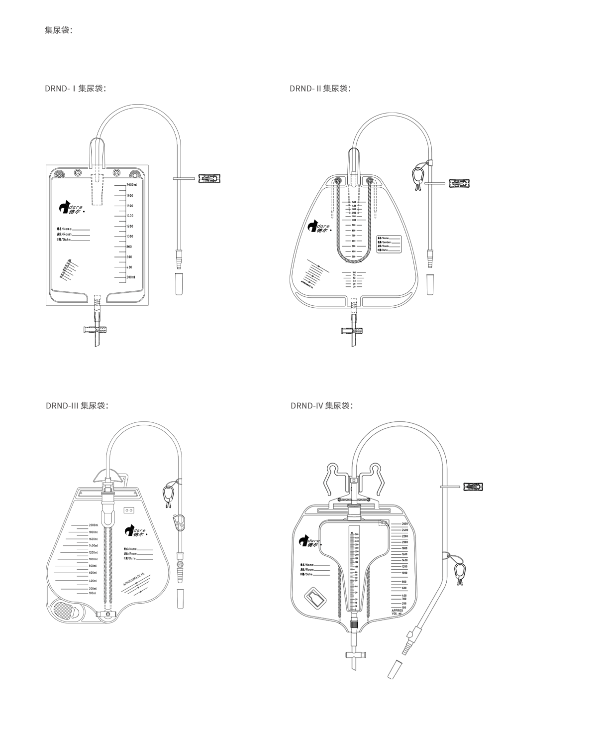 與導(dǎo)尿管連接,用于患者尿液或其它引流體液的收集??梢源才怨潭?,或佩戴隨身體移動。